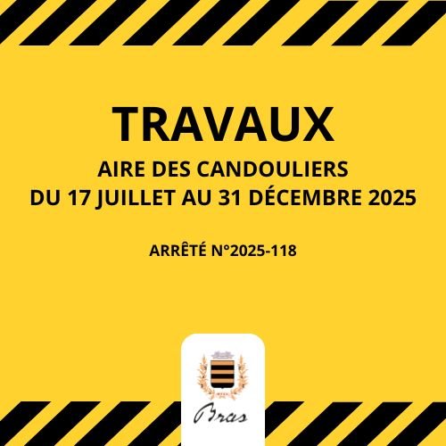 Les travaux sur l'Aire des Candouliers ont débuté mi-juillet et se tiendront jusqu'à fin 2025. Par conséquent, un arrêté municipal régit cette période interdisant notamment les deux dernières alvéoles du parking au stationnement sauf pour les véhicules de chantier.