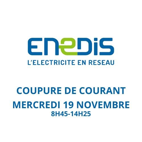 Le mercredi 19 novembre 2025, entre 8h45 et 14h25, Enedis informe que des travaux pourront entraîner une coupure d'électricité sur le territoire communal :