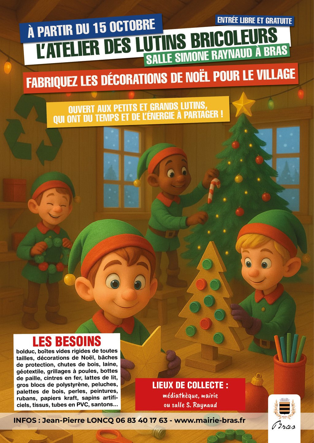 Comme chaque année, ils ont besoin de vous ! Envie de mettre la main à la pâte et de partager un moment convivial et créatif ? Contactez Jean-Pierre au 📞 06 83 40 17 63 pour intégrer ensuite le groupe whatsapp et être informé des dates et horaires de présence de l'atelier des lutins dans la salle S. Raynaud.