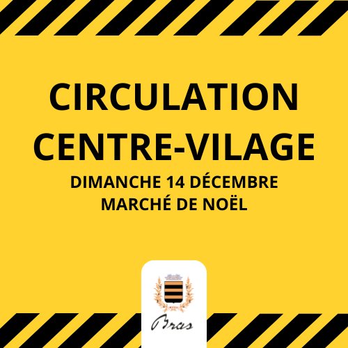 En raison du marché de Noël, la circulation sera interrompue, le 14 décembre de 7h à 19h :