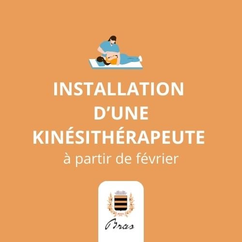 Lors de la cérémonie des vœux, le Maire a annoncé l’arrivée d’une kinésithérapeute à Bras dès le début du mois de février. Vous pouvez d’ores et déjà prendre contact avec Margaux DESCAMPS au 06 67 76 04 44.