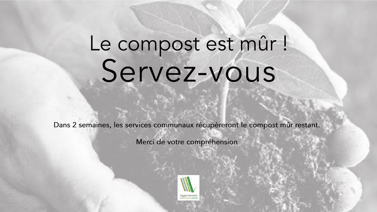 L'Agglomération Provence Verte a procédé ce matin à l'ouverture du bac de maturation des composteurs collectifs situés sur le parking en face de la médiathèque. Le compost étant mûr, il sera en libre-service et gratuit pour une durée de 2 semaines (soit jusqu'au 10/03/2026). Passé ce délai, nos services techniques pourront le vider et s'en servir pour les travaux en espaces verts.